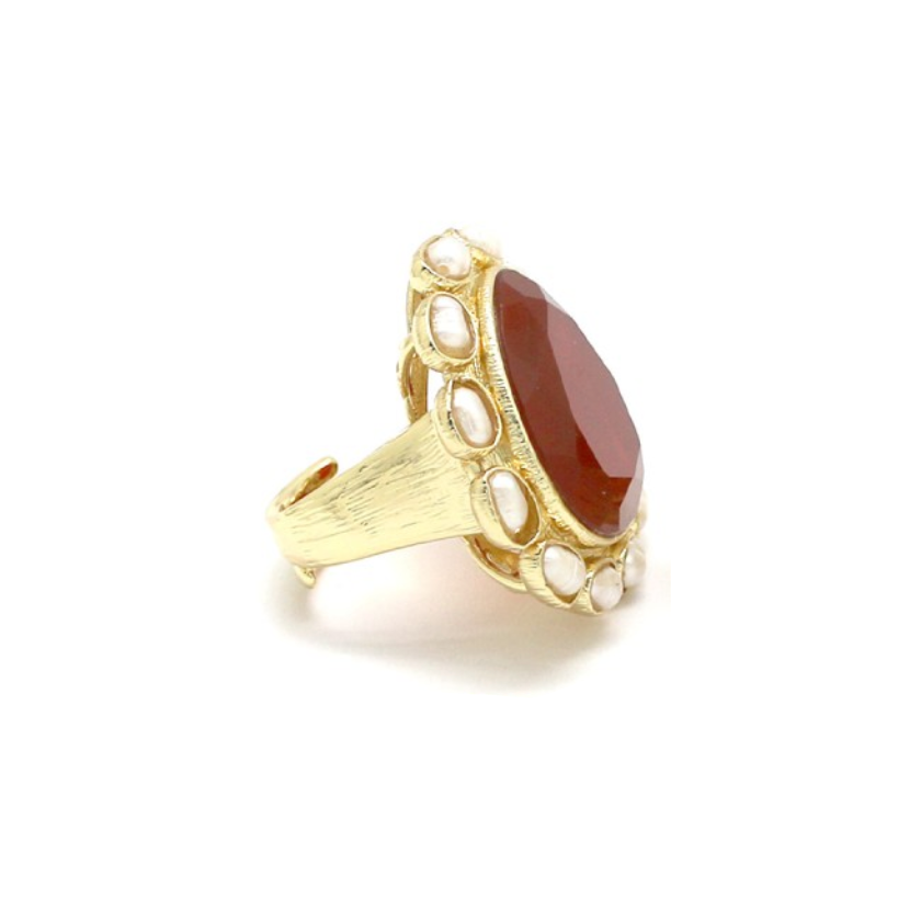 Gredzena formu apvij saldūdens pērles, kas ienes maigumu un līdzsvaru, veidojot harmonisku kontrastu ar saulaino akmeni. Zeltītā bronza piešķir rotai siltu, antīku noskaņu un padara to par izteiksmīgu akcentu gan ikdienai, gan svētku tērpam.